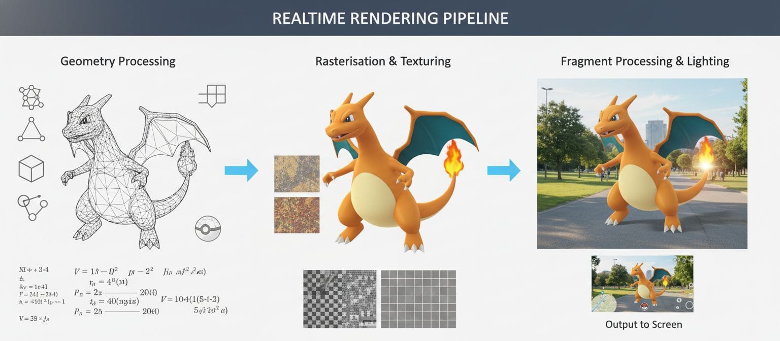 AR auf Smartphones benötigt Real-time Rendering mit zusätzlichen Herausforderungen: Kamera-Feed einblenden, Tracking berechnen, virtuelle Objekte perspektivisch korrekt einbetten – alles in Echtzeit auf mobiler Hardware. Performance-Budget noch enger als Desktop.