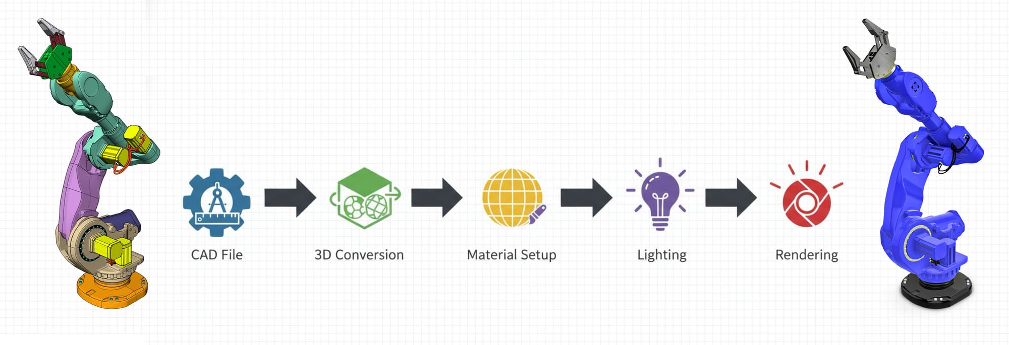 Mit CAD-to-3D-Pipelines, wie sie moderne Rendering-Plattformen nutzen, ist das automatisiert: Aktualisierte CAD-Datei hochladen, System generiert aktualisierte Visualisierungen. Direkt aus der Engineering-Quelle, garantiert korrekt.